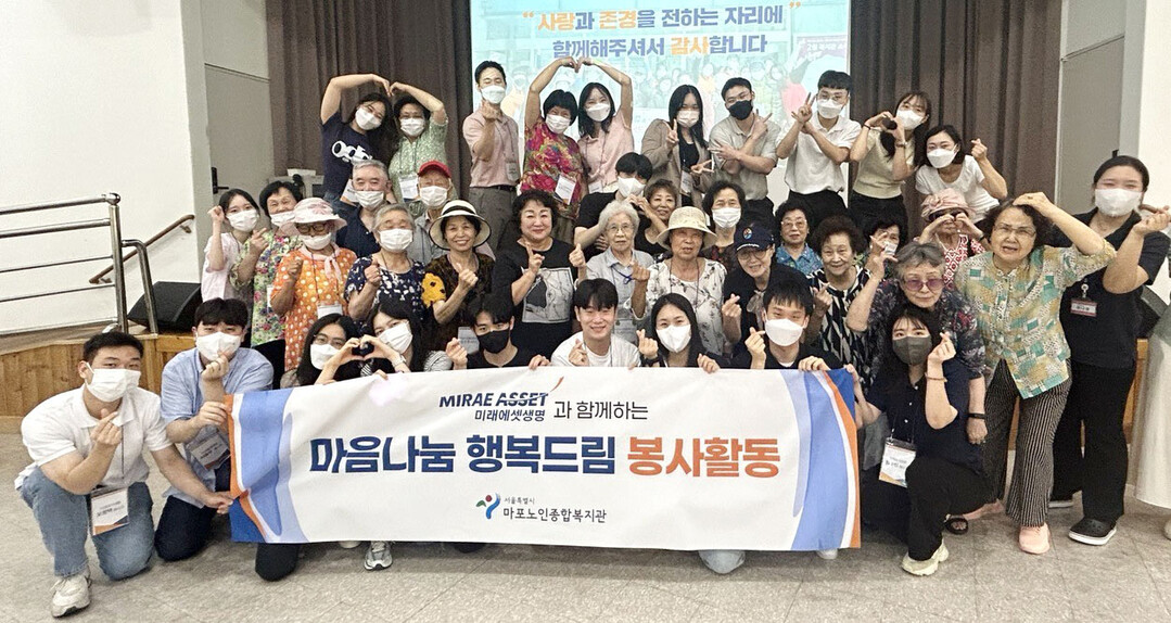| 미래에셋생명 2024년 신입사원들이 서울 마포노인종합복지관에서 어르신들과 함께 ‘마음나눔 행복드림’ 봉사를 진행했다. [사진=미래에셋생명] |