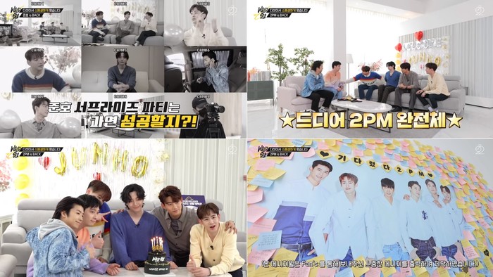 또 JUN. K, 닉쿤, 우영 세 사람이 지난해 12월에 작성한 생활계획표를 검증하는 시간을 가지며 예능감을 뽐냈다. 완전체 2PM은 쉴 틈 없이 오디오를 채우며 '찐친' 케미를 드러냈다. 특히 11월, 12월 칸에 '연말 가요제 준비하면 좋겠다', '연말 콘서트 준비하면 좋겠다'라고 적어둔 소망에 다 같이 환하게 웃어 보이며 훈훈함을 자아냈다.