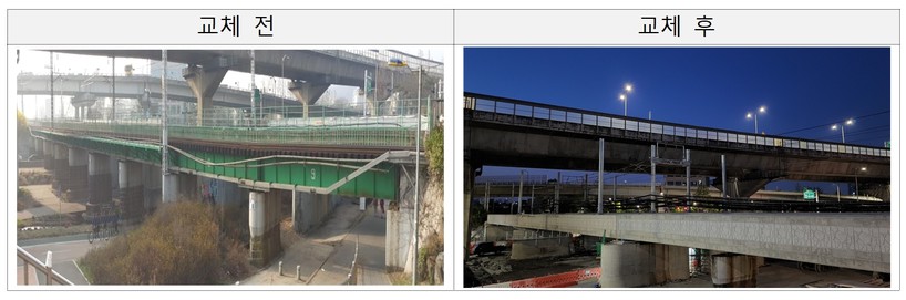 | ▲ 교량상판 교체 전·후 모습. |