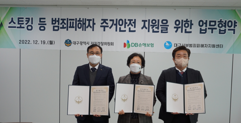 DB손해보험은 대구경찰자치위원회·대구서부범죄피해자지원센터와 함께 대구지역 스토킹 피해자 등 사회적 약자 147가구에게 홈보안서비스(CCTV)를 지원한다.