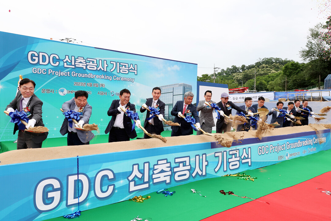 9일 대우건설에 따르면, 이번에 기공식을 진행한 GDC는 지하3층~지상9층 데이터센터 1개동, 지하3층~지상9층 오피스 1개동과 지하3층~지상5층 오피스 1개동을 건축하는 공사로 3180억원 규모다. 향후 엠피리온디씨가 데이터센터 소유 및 운영사가 된다.