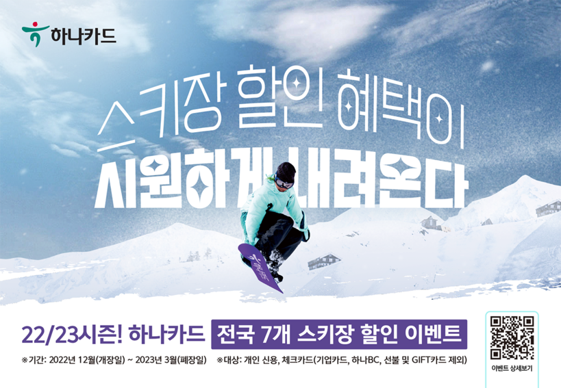 [하비엔=송현섭 기자] 하나카드는 22/23 시즌을 맞아 전국 스키장에서 다양한 할인 이벤트를 진행한다고 5일 밝혔다.