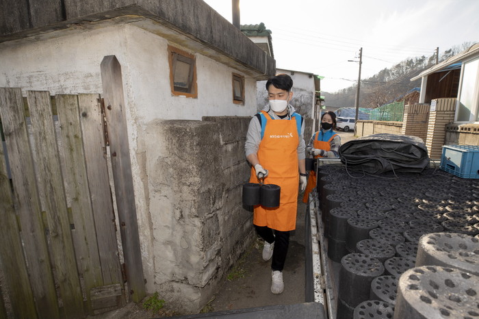 | ▲ KT&G 임직원 봉사단의 연탄나눔 봉사활동. [사진=KT&G복지재단] |