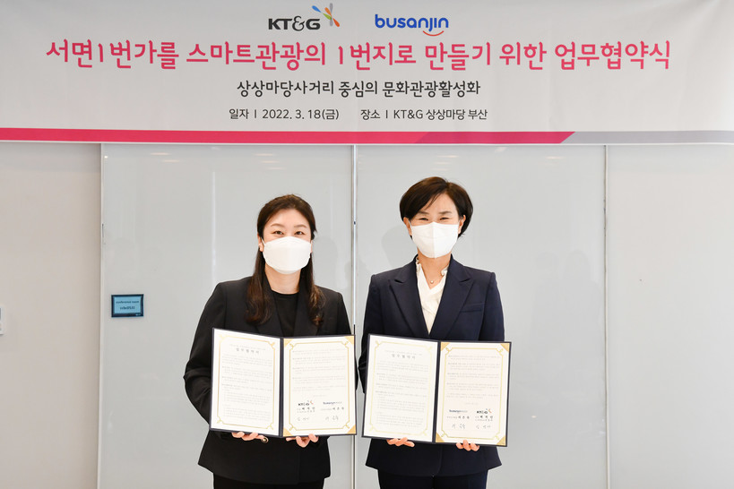 이번 협약은 서면 1번가(KT&G상상마당 부산 사거리)를 중심으로 스마트관광 활성화와 신발산업특구의 브랜드가치 향상이 목적이다. 이를 위해 KT&G는 상상마당의 다양한 문화 프로그램을 선보이고, 부산진구청은 행정적 지원과 홍보 등을 담당하게 된다.