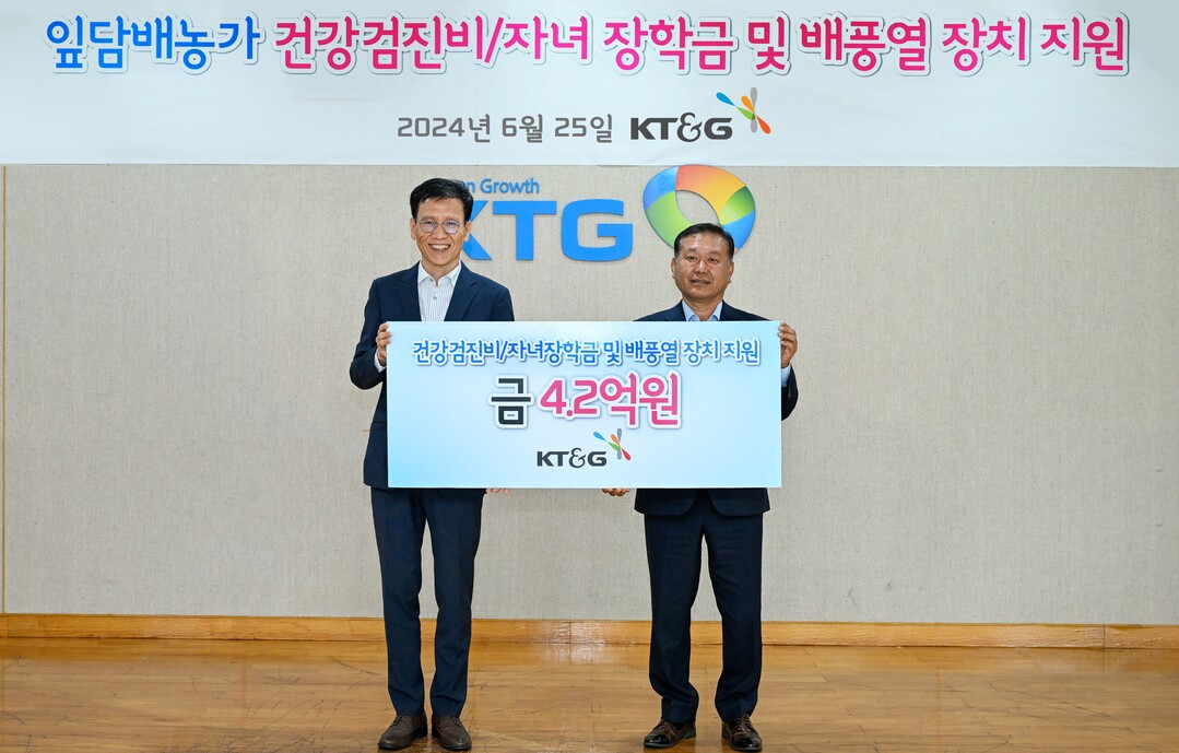 KT&G는 지난 2013년부터 해마다 잎담배 농가에 복지증진 지원금을 전달해 오고 있다. 올해까지 혜택을 받은 경작인은 1만5212명에 이르고, 지원금은 총 42억7700만원에 달한다.