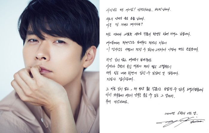 마지막으로 현빈은 "그 마음 잊지 않고, 저 또한 좋은 작품으로 보답할 수 있도록 노력하겠습니다. 다시 자유롭게 서로의 안부를 물을 수 있는 그 날까지. 부디 건강하세요"라고 건강을 당부했다.