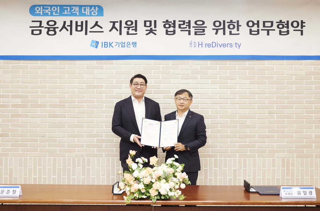 [하비엔뉴스 = 김성욱 기자] IBK기업은행은 지난 14일 하이어다이버시티와 외국인 금융서비스 지원을 위한 업무협약을 체결했다고 15일 밝혔다.