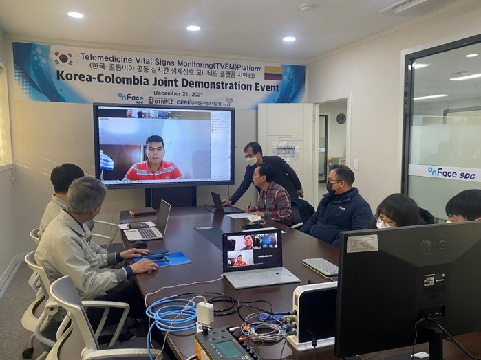 중소벤처기업부의 지원을 받아 개발된 ‘원격생체신호모니터링 플랫폼’은 온페이스 SDC 주도로 디트리플과 구미전자정보기술원이 지난 2년간 공동 개발한 플랫폼으로, 최근 한국-콜롬비아간 시연회를 성공적으로 끝냈다.