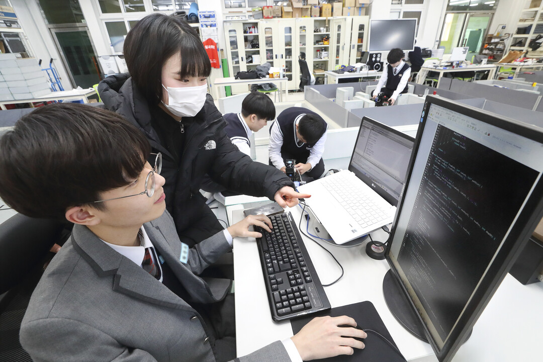 | ▲서울로봇고에서 재학생들이 AI 교육을 받고 있는 모습. [사진=KT] |