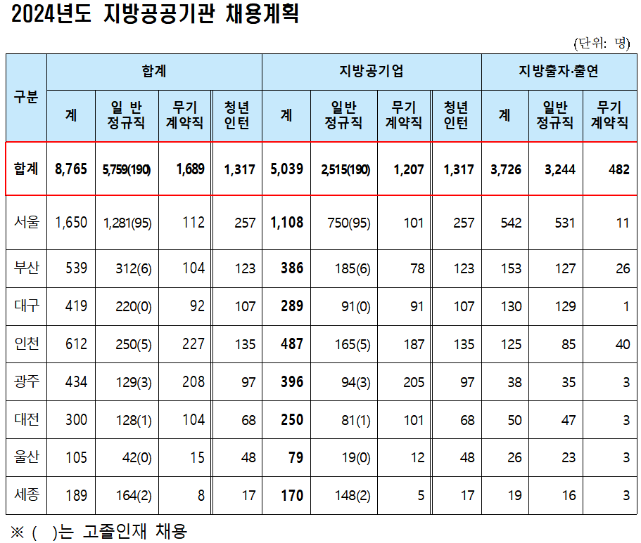 | 2024년 지방공공기관 채용계획. [자료=행정안전부] |