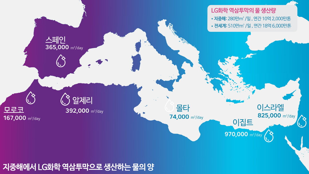 | 지중해 지역에서 LG화학의 역삼투막으로 정수하는 물의 양 [사진=LG화학] |