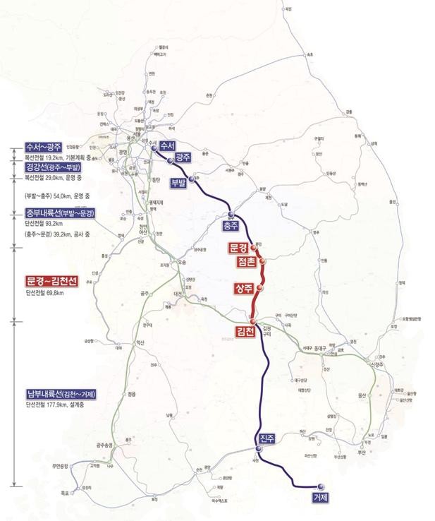 문경-김천 철도건설 사업은 경북 문경에서 상주를 거쳐 김천까지 총 69.8㎞ 구간의 전철을 건설해 우리나라 내륙철도망을 완성하는 사업으로, 총 사업비 1조3031억원(설계속도 250㎞/h)이 투입된다.