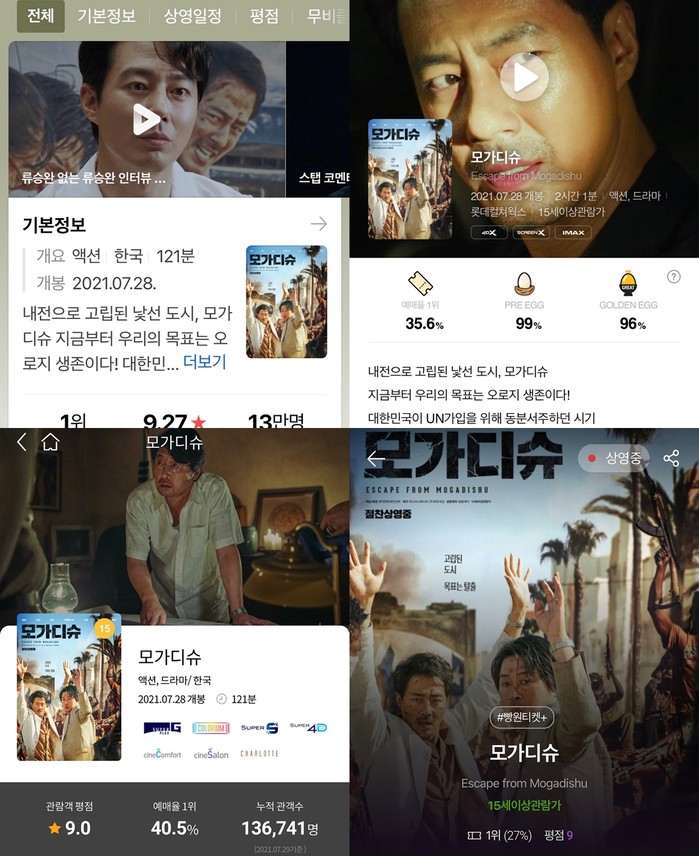 <모가디슈>는 1991년 소말리아의 수도 모가디슈에서 내전으로 인해 고립된 사람들의 생사를 건 탈출을 그린 영화다. 팬데믹 시대 여름 극장가의 침체기를 뚫을 영화 <모가디슈>가 폭발적인 관객 입소문 몰이 중이다. <모가디슈>는 네이버, CGV, 롯데시네마, 메가박스 등 전 사이트에서 평균 9점 이상의 높은 평점을 기록하며 실관람객들의 지지를 받는 중이다.