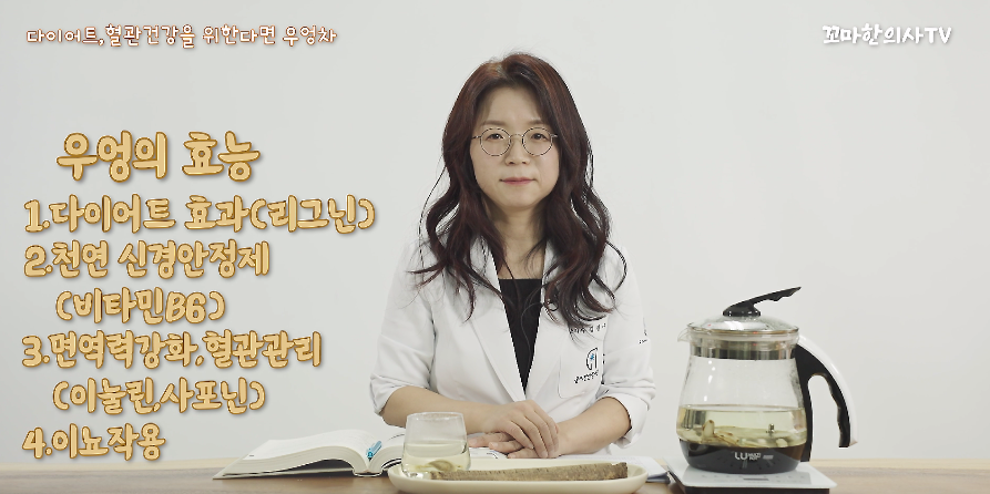 | 김진아 원장이 유튜브 채널 ‘꼬마한의사TV’를 통해 우엉의 효능을 설명하고 있다. [사진=꼬마한의사TV] |