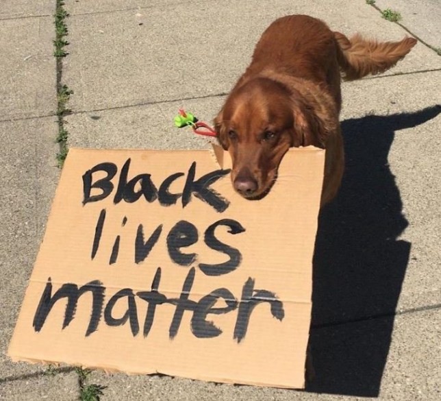 시위 참가자들은 '흑인의 삶도 소중하다(Black lives Matter)'는 팻말을 들고 행진하는 버디의 모습을 보면서 즐거움을 감추지 못했다.