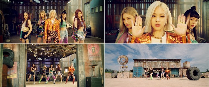 황량한 황무지에 덩그러니 서있는 빈티지한 느낌의 차고지. 이곳의 문이 열리자 화려한 의상을 입은 다섯 멤버가 비현실적인 미모와 비율을 뽐내며 등장한다.