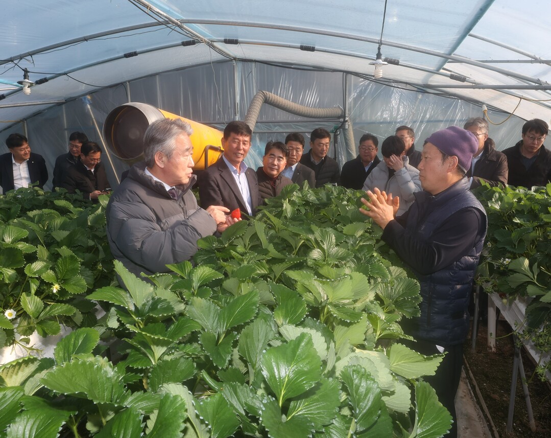 [하비엔뉴스 = 홍세기 기자] 강호동 농협중앙회장이 딸기 농가를 찾아 생육상황을 점검했다.