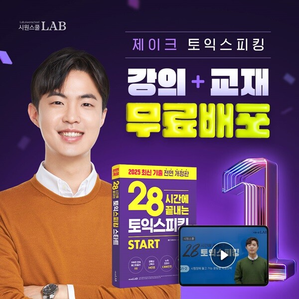 시원스쿨랩은 이번 교재 리뉴얼을 기념해 매일 선착순 30명을 대상으로 제이크 강사의 토익스피킹 강의와 워크북 교재를 무료로 배포한다. 제이크 강사는 14만 구독자를 보유한 인기 토익스피킹 유튜버로, 지난해 히트브랜드 대상 토익스피킹 강사 부문 1위를 차지했다.