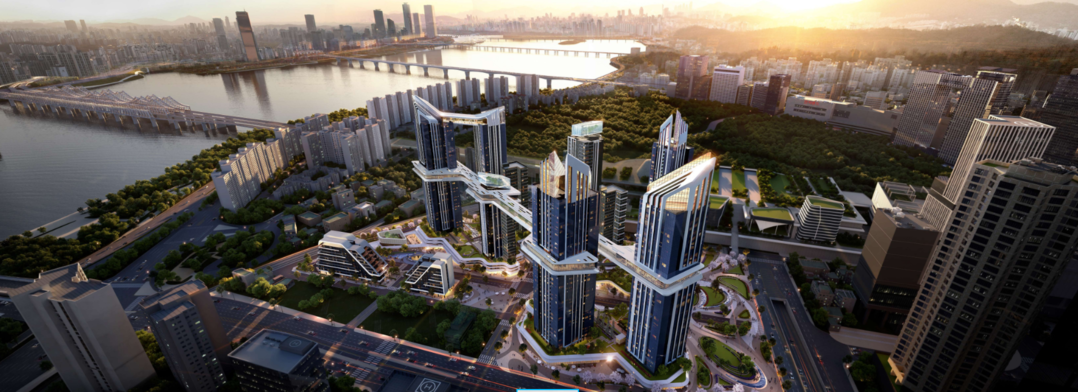 | HDC현대산업개발이 서울 용산구 한강로3가 40-641일대 7만1901㎡ 부지에서 진행되는 도시정비사업인 용산 정비창 전면 1구역 재개발 구역에 제시한 조감도. [사진=HDC현대산업개발] |