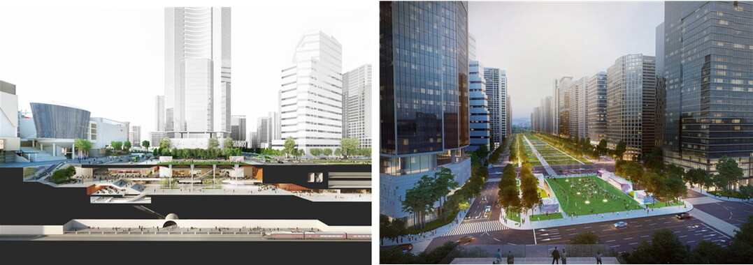 | HDC현대산업개발은 지하철 1호선, 4호선, 신분당선, GTX-B를 연결하고, 용산역 전면공원의 지하를 복합개발하는 대형 프로젝트인 용산역 전면공원 지하공간 개발사업을 진행 중이다. [사진=HDC현대산업개발] |