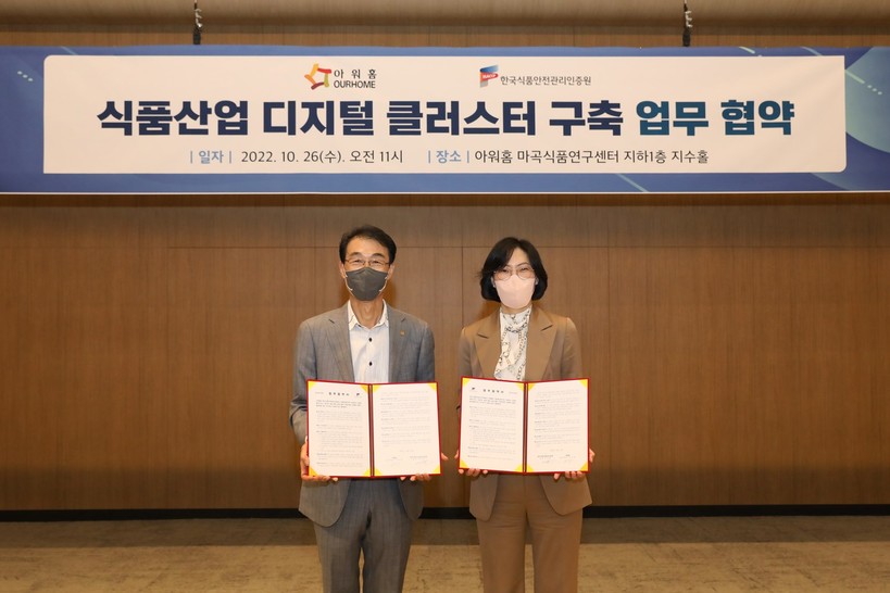 아워홈은 지난 26일 식품의약품안전처 산하 한국식품안전관리인증원(이하 HACCP인증원)과 ‘식품산업 디지털 클러스터 스마트 산업기반 조성’ 사업 성공을 위한 업무협약을 체결했다고 밝혔다.