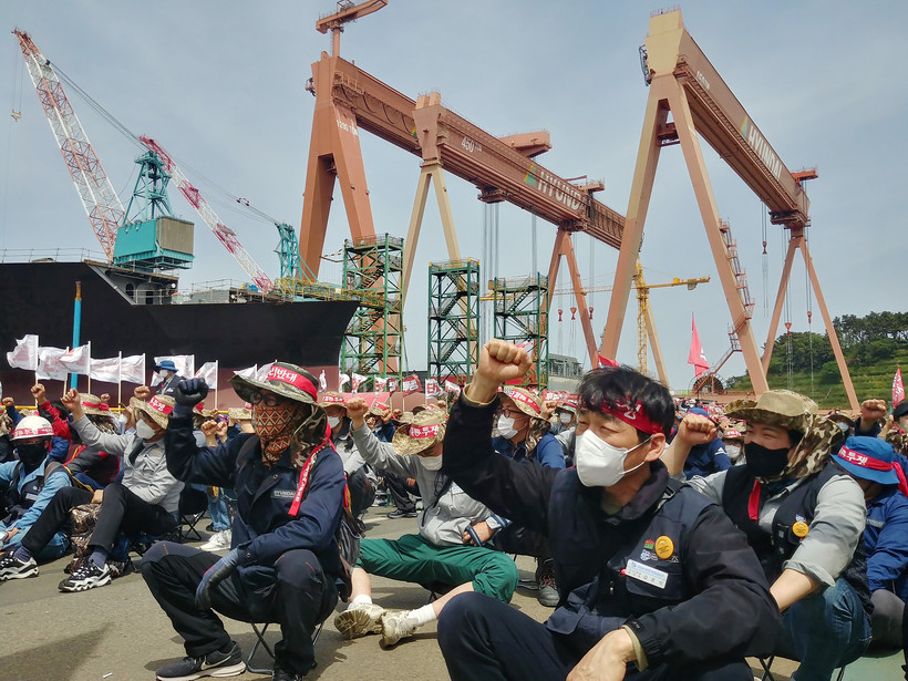 | ▲ 지난달 27일 현대중공업 노조가 임금협상 난항으로 울산 본사에서 파업에 돌입했다. [사진=현대중공업 노조] |