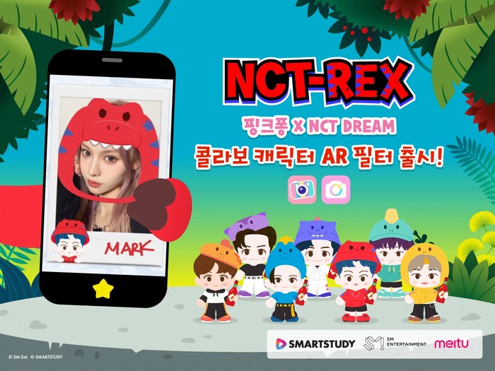 글로벌 콘텐츠 기업 스마트스터디(대표 김민석)는 자사 인기 유·아동 브랜드 핑크퐁과 NCT DREAM(엔시티 드림)이 손잡고 ‘NCT-REX’ AR(증강현실) 필터를 출시한다고 밝혔다. 9일부터 카메라 애플리케이션 ‘뷰티플러스’ 및 ‘뷰티캠’을 통해 만날 수 있다.