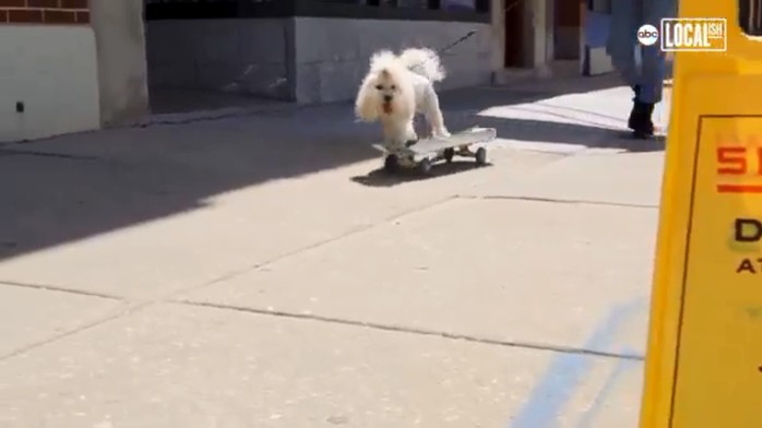 최근 스케이트보드를 타고 거리를 활보하는 2살 된 푸들이 미국 시카고에서 유명세를 떨치고 있다.