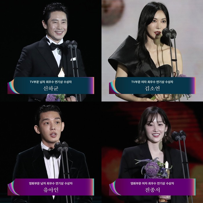 영화 부문의 최우수상은 <소리도 없이> 유아인, <콜>의 전종서가 수상의 영예를 안았다. 유아인은 "항상 어릴 때부터 유명해지고 싶고 호명되고 싶고 박수받고 싶었다. 배우가 되면서는 누군가의 마음을 움직이고 싶었다. 많은 인물을 맡으면서 저 자신에게 떳떳하기 힘들었다. 항상 혼란스럽고 답이 없는 순간들이 스쳐 지나가지만, 마음 열어주는 관객 여러분께 모든 영광 돌리고 싶다. 정말 감사드린다. 좋은 배우가 되도록 노력하겠다"고 말했다.