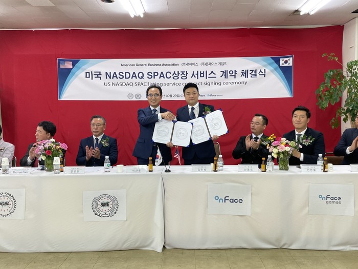 이날 미국 나스닥 스팩사인 AGBA사는 홍콩에 본사를 두고 있으며 미국에 스팩으로 상장된 회사로 한국내 유명 벤체기업 및 미래산업을 운영하는 회사와 합병을 위해 1년가량 조사한 결과 위조건에 합당한 4차산업 선도기업인 온페이스 및 온페이스게임즈는 미국에 스팩상장사인 미국연합상회(AGBA, America General Business Associational Henry liu)와 나스닥 상장 스팩상장을 위한 본 계약을 진행했던 것으로 알려졌다.