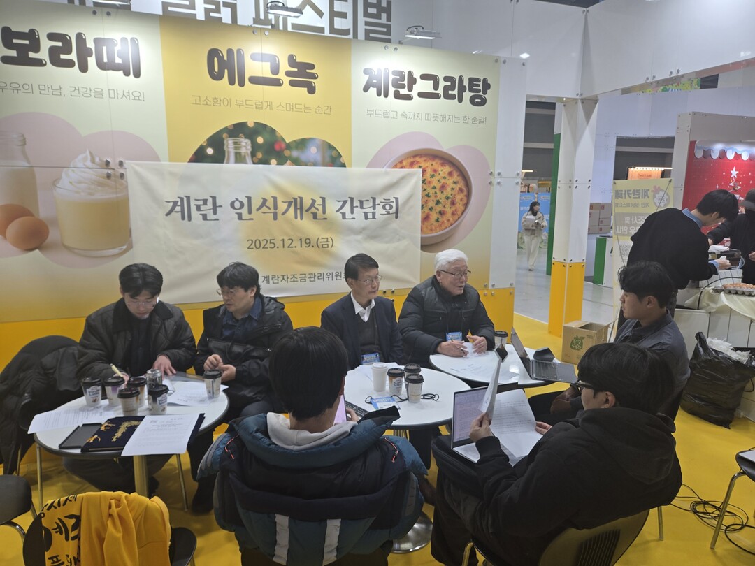 계란자조금관리위원회(위원장 안두영)는 19일, 서울 양재동 aT센터 ‘에크테크 코리아 2025’ 행사장 내 계란자조금관리위원회 홍보 부스에서 이상진 계란연구회장 등이 참석한 가운데 ‘계란 인식 개선 간담회’를 가졌다고 밝혔다.
