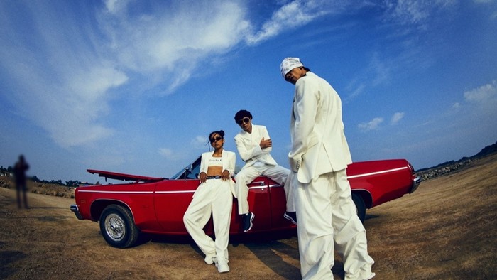 싹쓰리는 LA 사막을 떠오르게 만드는 앨범 재킷 촬영 현장에서 붉은 색 오픈카와 네온컬러, 멤버들이 직접 만든 D.I.Y 패션으로 90년대 무드를 완벽히 재현해 독보적인 존재감을 드러냈다.
