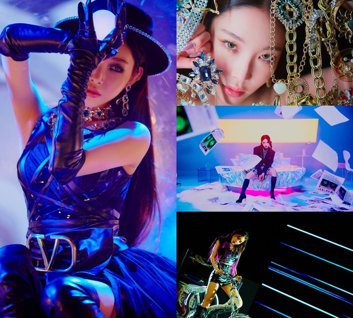 뮤직비디오 스틸컷은 화려한 이미지로 강렬한 콘셉트를 표현, 청하의 매력적인 비주얼을 담아내 본편에 대한 기대감을 고조시킨다. 은색 바이크, 검은색 모자와 구슬, 각종 보석, 양갈래 머리 등 각각의 오브제가 청하만의 눈빛, 아우라와 합쳐져 시선을 사로잡기 충분하다.