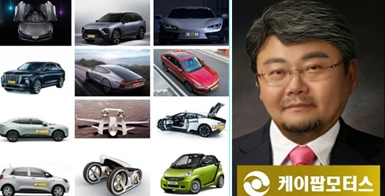 | ▲ 케이팝모터스에서 판매될 전기차와 황요섭 회장. [사진=케이팝모터스] |