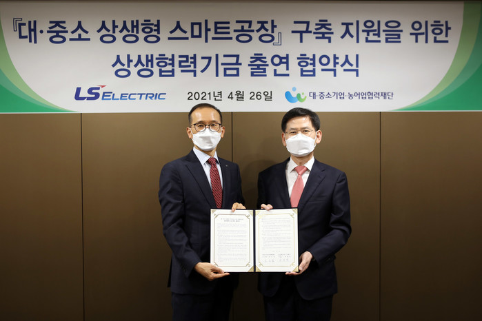 LS일렉트릭은 지난 26일, 서울 한강대로 LS용산타워에서 대·중소기업·농어업협력재단(이하 협력재단)과 ‘대·중소 상생형 스마트공장 구축지원을 위한 상생협력기금 출연 협약’을 체결했다고 밝혔다.