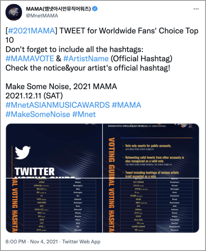 -트위터, 2021 MAMA ‘Worldwide Fans’ Choice TOP 10’ 부문 투표 진행