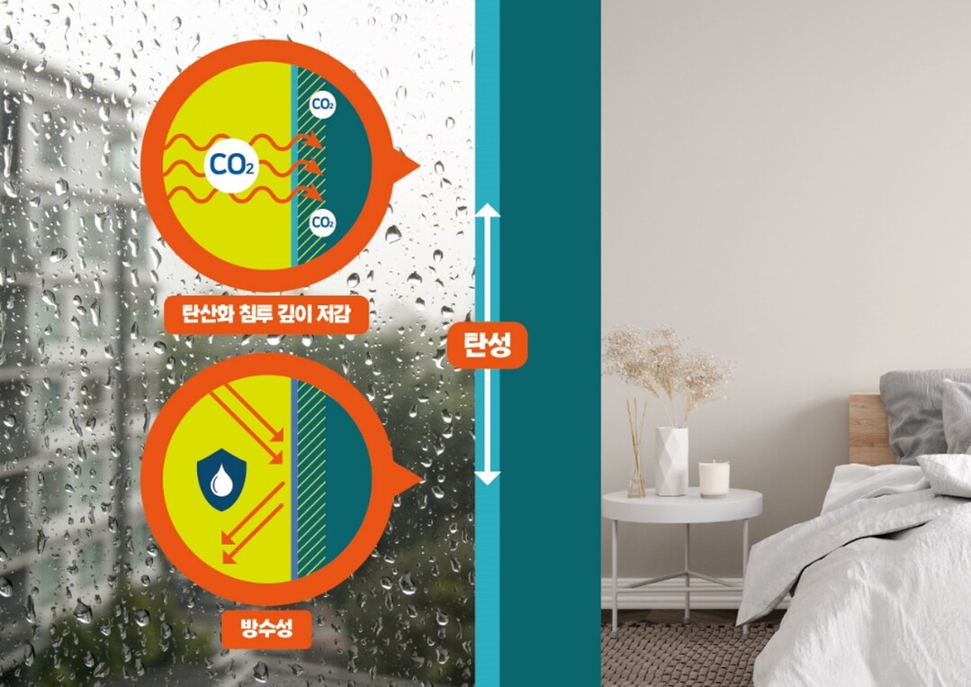 신기술의 핵심은 페인트 자체의 탄성과 방수 기능이다. 일반적인 외벽 마감재는 시간이 지남에 따라 균열과 누수로 인해 콘크리트가 손상된다. 이와 달리 신기술은 고탄성 소재를 활용해 균열 발생을 억제하고 우수한 방수 성능으로 수분 침투를 차단한다. 이를 통해 콘크리트 열화 속도를 크게 늦추고 구조물의 내구성을 장기간 유지할 수 있도록 한다.