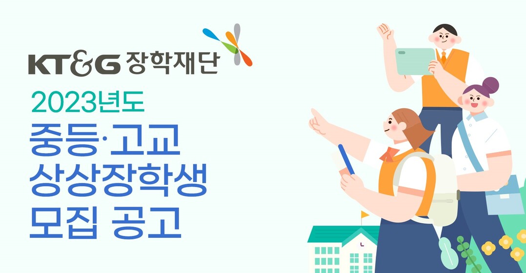 | KT&G장학재단이 사회배려계층 청소년을 대상으로 ‘2023년도 상상장학생’을 모집한다. |