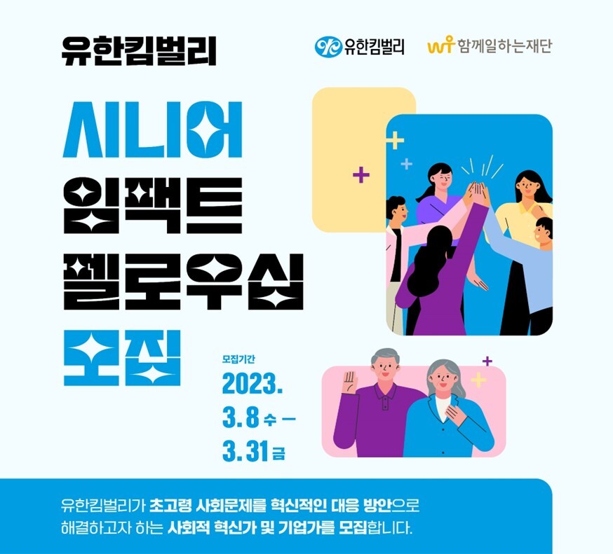 [하비엔뉴스 = 홍세기 기자] 유한킴벌리와 함께일하는재단이 새로운 사회공헌 시범사업인 ‘유한킴벌리 시니어 임팩트 펠로우십’을 런칭하며 참가자 모집을 시작한다.