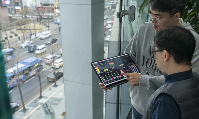 | ▲SKT 관계자가 통신 데이터 기반 교통 흐름 분석자료를 연구하고 있다. [사진=SKT] |