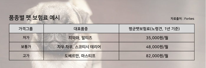 포브스(Forbes)는 반려견 품종에 따른 펫보험료를 발표했다.