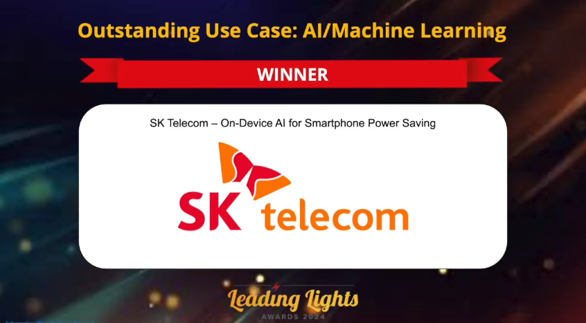 SK텔레콤은 온디바이스 AI 기반 스마트폰 소비전력 감소 기술에 대한 R&D 성과를 바탕으로 우수 AI 활용 사례 부문에서 수상의 영예를 안았다. 이는 이동통신 영역에서 네트워크·단말 성능 향상 및 서비스 품질 개선을 위해 AI를 혁신적인 방법으로 활용한 통신사 또는 제조사에게 수여된다.