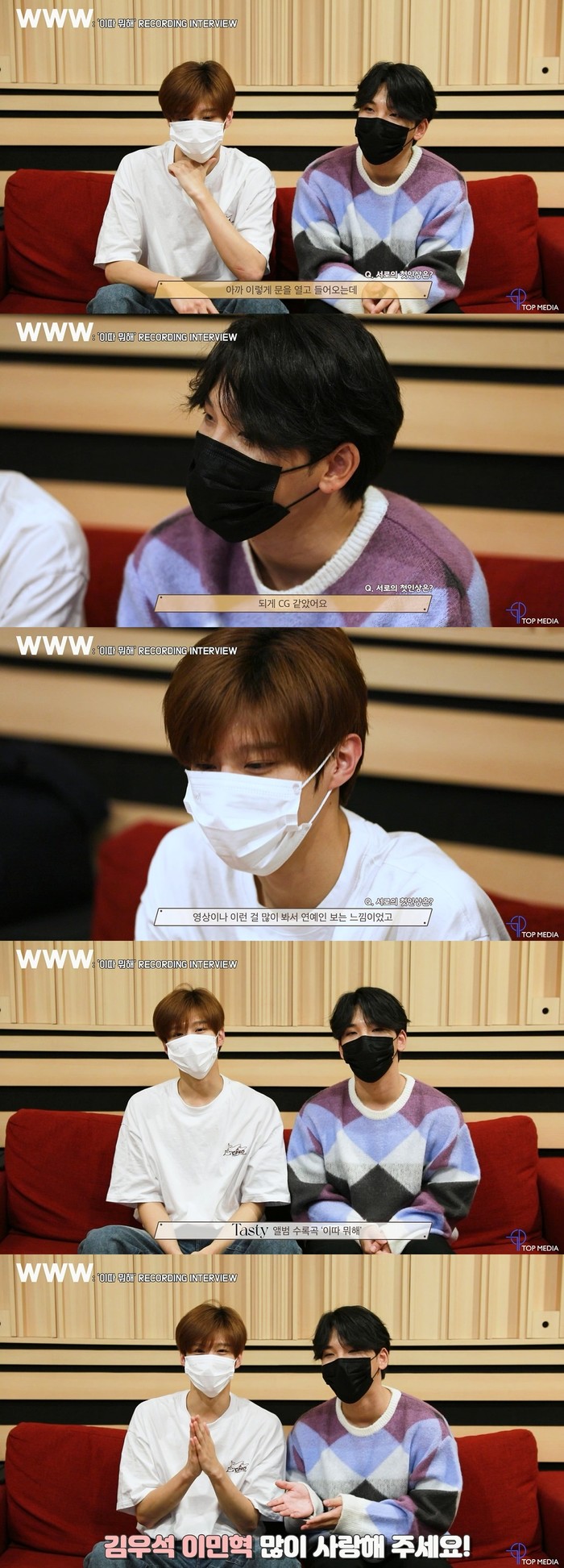 해당 영상에서 이민혁은 김우석의 첫인상을 묻자 "문을 열고 들어오는데 되게 CG 같았다. 사람이 아닌 줄 알았다. 되게 비현실적으로 생기고 잘생겼다고 생각했다"고 답하며 김우석의 남다른 비주얼을 칭찬했다. 이에 김우석 역시 “평소에 좋아하는 아티스트라 영상을 많이 봐서 그런지 연예인을 보는 느낌이었다. 함께 작업하게 돼서 영광이다”고 덧붙여 훈훈함을 선사했다.