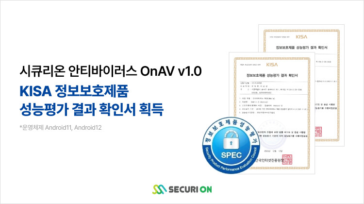 [하비엔뉴스 = 이길주 기자] AI 기반 사이버 보안기업 시큐리온은 모바일 안티바이러스 솔루션 ‘OnAV V1.0’이 한국인터넷진흥원(KISA)의 정보보호제품 성능평가를 획득했다고 7일 밝혔다.