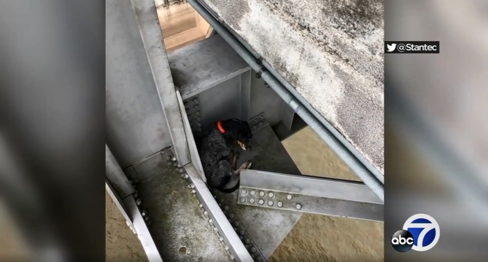 발견 당시 개는 36 m 상공의 교량 데크 바로 밑에 있었다.