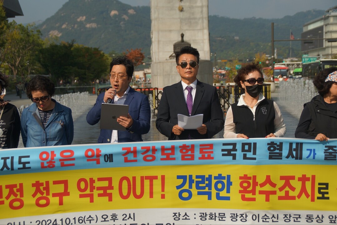 | 지난 16일 행동하는한약사들의 모임이 서울 광화문광장에서 기자회견을 갖고 있다. |