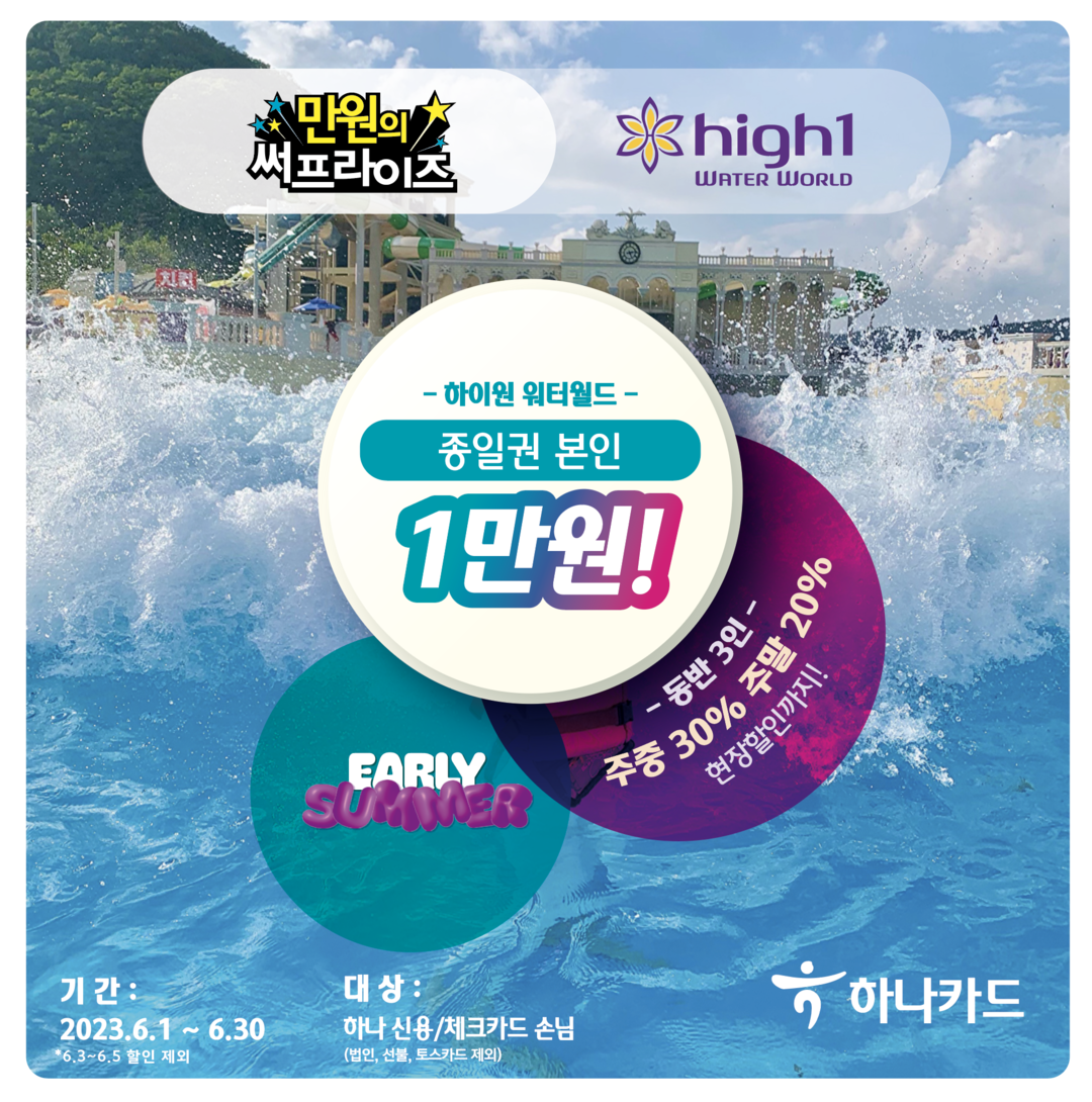 하나카드는 또 ▲아산스파비스 최대 52% 할인·선착순 1000명 비치볼과 비치백 경품 증정 ▲모나용평 워터파크 최대 40% 할인 ▲웨이브파크 최대 30% 할인 ▲휘닉스평창 블루캐니언 최대 30% 할인 ▲웰리힐리파크 워터플래닛 최대 30% 할인 ▲SEA LIFE 부산 아쿠아리움 최대 30% 할인 등 전국 유명 워터파크 혜택을 마련했다.