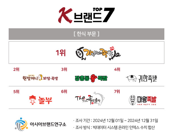 | K-브랜드 톱7 한식(족발·보쌈) 부문. [사진=아시아브랜드연구소] |