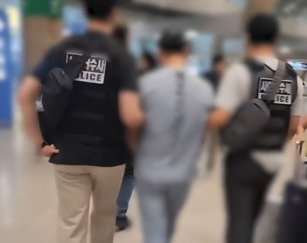 | KT소액결제 사건의 중국국적 용의자가 경찰에 연행되고 있다. [사진=경기남부경찰청] |