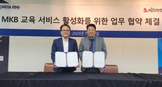 [하비엔뉴스 = 박정수 기자] 메타에듀와 비즈마켓렌탈은 6~10세 대상 공부방과 학원 전용 역량교육시스템인 ‘MKB’의 교육 서비스 활성화를 위해 ‘창업지원 렌털프로그램 서비스’에 관한 업무협약을 체결했다고 1일 밝혔다.